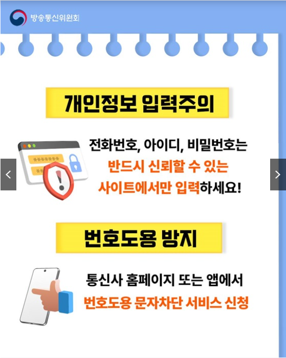 - 전화번호, 아이디, 비밀번호, 계좌번호 등은 공식 사이트 외에는 입력하지 말아야 합니다.