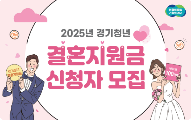 경기도는 도내 청년 신혼부부의 경제적 부담을 덜고, 안정적인 결혼 생활 기반을 마련해주기 위한 목적으로 ‘2025년 경기청년 결혼지원금 지원사업’을 실시하고 있습니다.