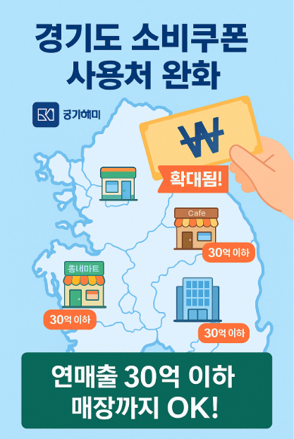 경기도가 ‘민생회복 소비쿠폰’ 사용처 기준을 기존 연매출 12억 → 30억 이하로 확대하면서, 지역경제 활성화와 소비 편의성 제고를 동시에 노립니다. 지원 규모, 사용 절차, 확대 범위, 주의사항을 한눈에 정리한 실전 가이드입니다.