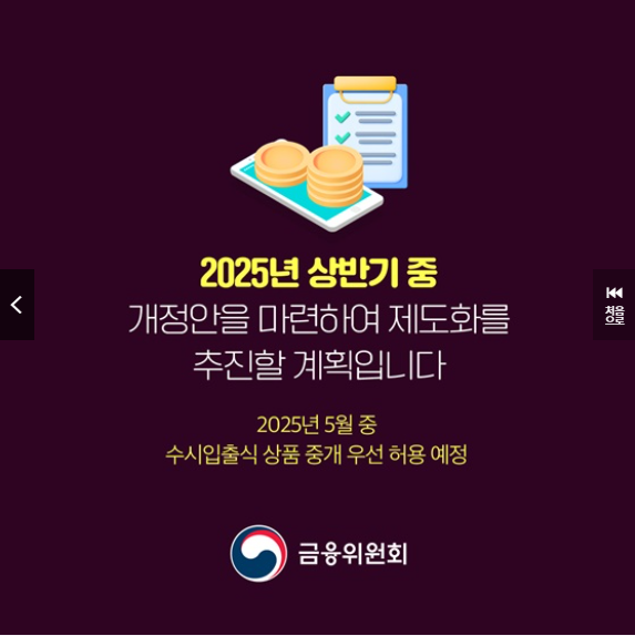 이러한 성과를 기반으로 금융위원회는 2025년 상반기 중 관련 법령을 정비하고, 제도화를 본격 추진합니다. 특히 2025년 5월 중에는 수시입출식 상품 중개가 우선 허용될 예정이며, 점차 대상 상품과 채널도 확대될 전망입니다.