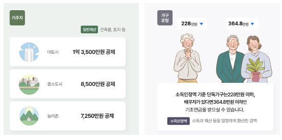 - 재산의 소득환산액: 일반재산(부동산, 자동차 등), 금융재산(예·적금 등)에서 기본 공제액을 제외한 후 소득으로 환산