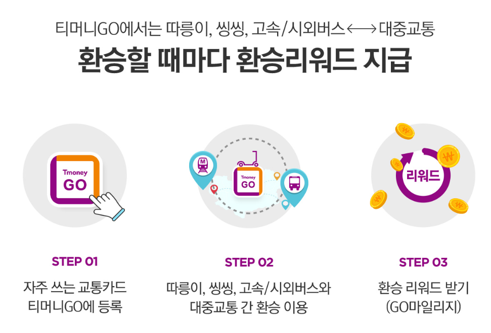 - 대중교통, 온다택시, 따릉이, 씽씽, 공항버스 등 티머니GO의 다양한 서비스를 이용할 때마다 GO마일리지가 적립됩니다. 적립된 마일리지는 티머니GO의 모든 서비스에서 현금처럼 사용할 수 있습니다.