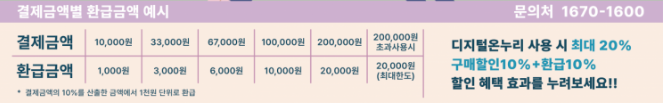 환급은 디지털 온누리상품권(모바일·카드형)으로 결제한 소비자에게 회차별 누적 결제금액의 최대 10%를 동일한 디지털상품권으로 환급해 주는 방식으로 진행됩니다. 매주 일요일부터 토요일까지를 1회차로 정해 총 20회차로 운영되며, 회차별로 1인당 최대 2만 원까지 환급받을 수 있습니다.