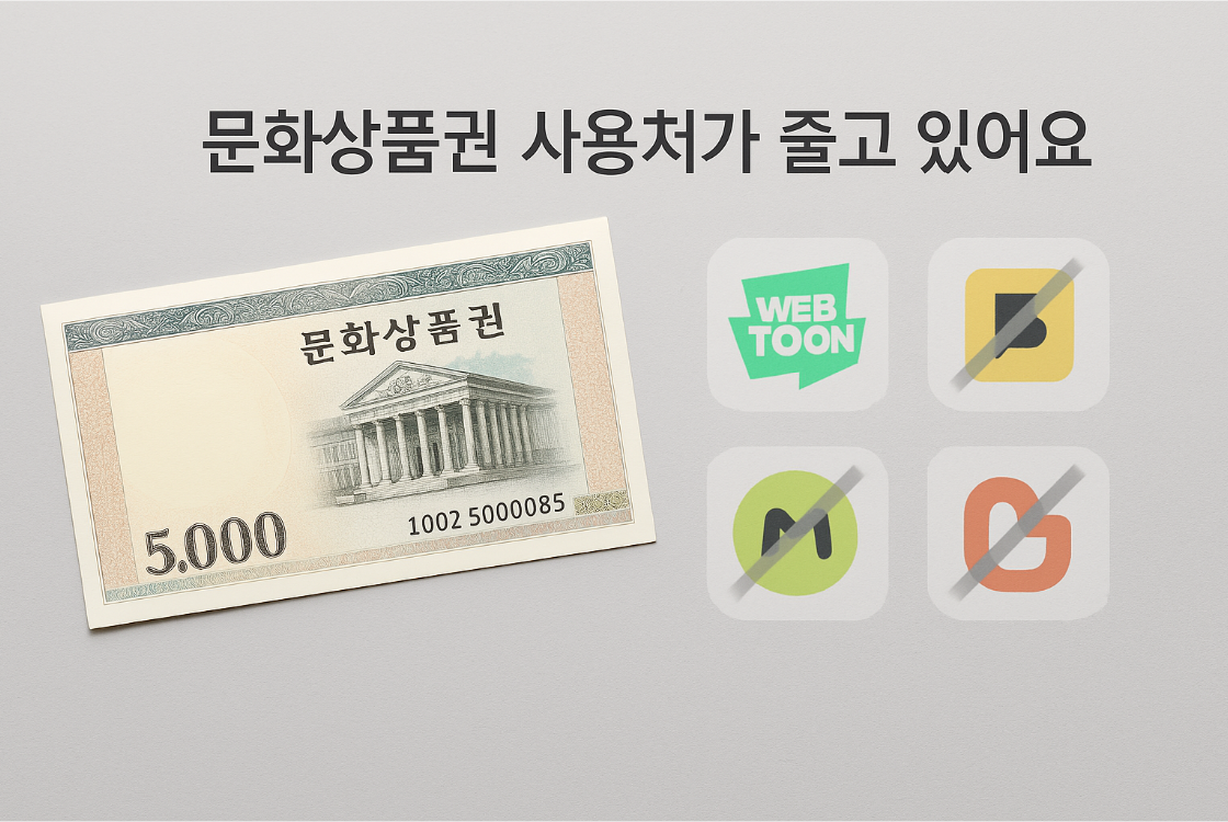 또한, 문화상품권은 여전히 생일 선물, 교내 이벤트, 각종 경품 등으로 많이 활용되기 때문에 10대~20대에게는 익숙하고 흔한 ‘디지털 자산’입니다. 그런데 정작 이들이 많이 사용하는 웹툰, 음악, 웹소설 플랫폼에서 점점 사용할 수 없게 된다면 문화상품권의 실용성은 크게 떨어질 수밖에 없습니다.