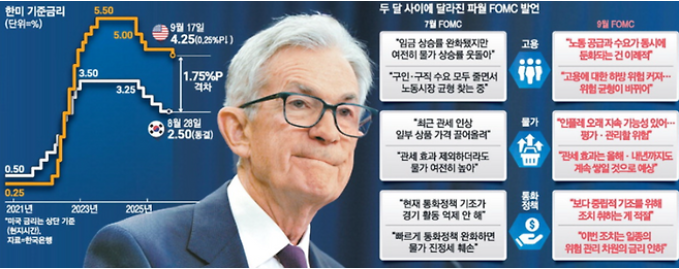 2025년 9월 17일(현지시간), 미국 연방준비제도(Fed)가 기준금리를 25bp(0.25%포인트) 인하했습니다. 이는 작년 말 이후 약 9개월 만의 금리 인하 조치이며, 트럼프 행정부 출범 이후 첫 금리 인하였습니다.