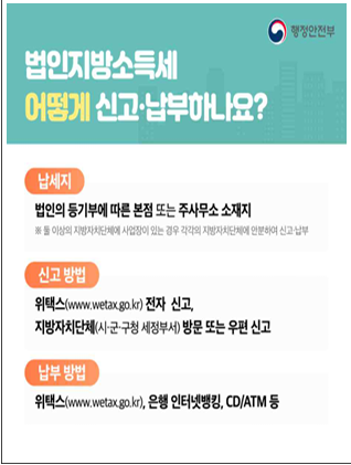 - 제출 방법: 방문, 우편 또는 위택스 www.wetax.go.kr