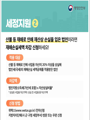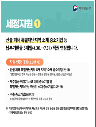 2. 산불 피해 및 수출 중소기업 대상 세정지원