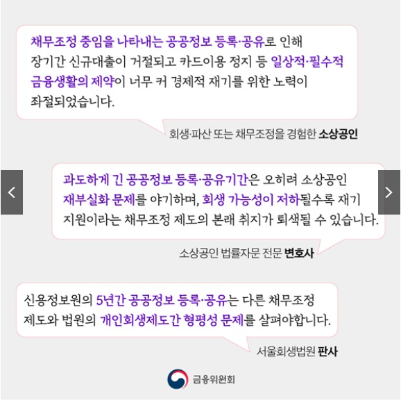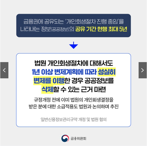 - 최대 5년간 자금이용 제약을 초래하던 공공정보 → 1년 성실 상환 시 삭제 가능
