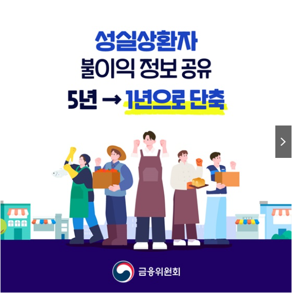이에 금융위원회는 대통령 지시에 따른 '1호 조치'로서, 공공정보 공유기간을 기존 5년에서 1년으로 단축하는 개선책을 내놓았습니다. 이는 단순한 행정 조정이 아닌, 소상공인의 경제적 재도약을 실질적으로 지원하는 구조 개편이라 할 수 있습니다.