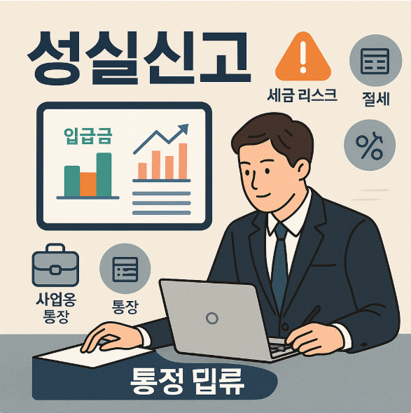 성실신고 확인대상자는 단순한 장부 작성만으로는 소득을 입증하기 어렵습니다. 입금 내역, 출금 내역, 세금계산서 발행, 현금영수증, 카드 매출 등 모든 흐름이 투명하게 보여야 하며, 그 중심에 바로 사업용 통장이 있습니다.