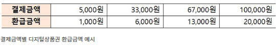 - 1000원 단위로 환급되며, 최소 결제금액은 5000원 이상이어야 합니다.