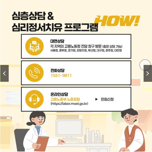 고용평등 심층상담 서비스는 피해 근로자들이 정신적 안정을 찾고, 건강한 일상으로 복귀할 수 있도록 다양한 심리 정서 치유 프로그램을 제공합니다. 이를 통해 근로자들은 자신의 감정을 이해하고, 스트레스를 관리하며, 재발 방지를 위한 대처 방법을 배울 수 있습니다.
