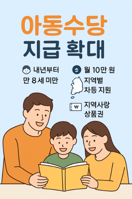 아동수당 지급 확대는 단순히 금액을 늘리는 것이 아니라, 가정의 생활 안정과 지역 균형 발전, 그리고 저출산 문제 해결이라는 국가적 과제를 함께 안고 가는 종합적 정책입니다. 내년부터 만 8세 아동까지 확대되고, 2029년에는 만 11세까지 지원 범위가 넓어지는 과정은 부모 세대의 양육 부담을 덜고, 더 많은 아이들이 성장 단계에서 공적 지원을 받을 수 있도록 설계되었습니다.