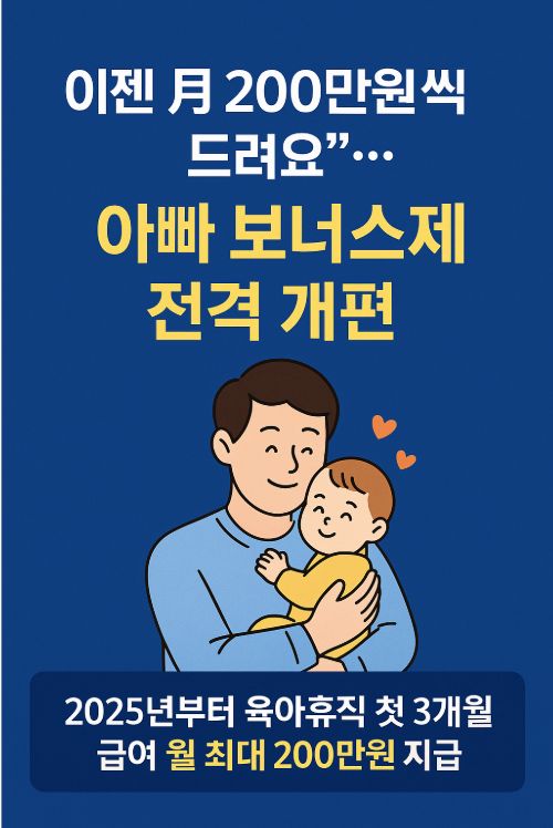 이번 개정은 2025년 1월 1일 이후 육아휴직자부터 소급 적용되어, 이미 육아휴직을 시작한 근로자도 혜택을 받을 수 있다는 점에서 큰 주목을 받고 있습니다. 이 글에서는 아빠 보너스제의 개념부터 달라진 급여 체계, 신청 요건, 제도 활용 팁까지 자세히 설명드리겠습니다.