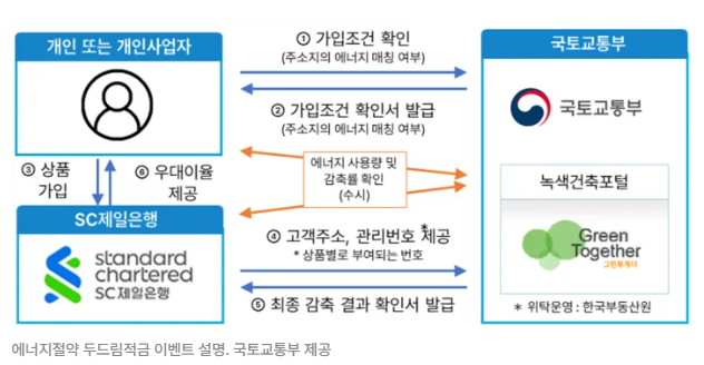 국토교통부와 SC제일은행이 협력하여 에너지 절약 실천에 따라 우대금리를 제공하는 '에너지절약 두드림적금'을 출시하였습니다. 이 상품은 전기 사용량을 줄이면 최대 연 7.2%의 금리를 제공하여, 에너지 절약과 금융 혜택을 동시에 누릴 수 있는 기회를 제공합니다.