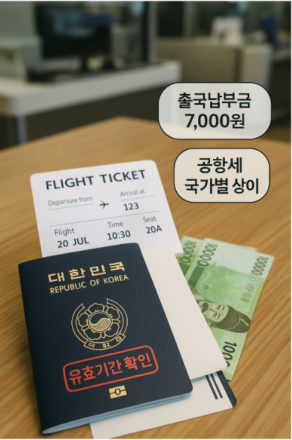 | 출국납부금 | 출국 시 국가 또는 정부가 부과하는 세금 (예: 한국 7,000원~10,000원) |