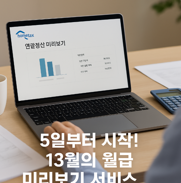 “5일부터 홈택스에서 ‘13월의 월급’ 연말정산 미리보기 서비스가 시작됩니다. 1~9월 사용액과 지난해 신고자료를 활용해 예상세액을 확인하고, 주요 공제·감면 항목별 맞춤 안내까지 받을 수 있습니다. 이번 연말정산을 앞둔 근로자라면 ‘절세 전략’을 미리 점검해 보세요.”