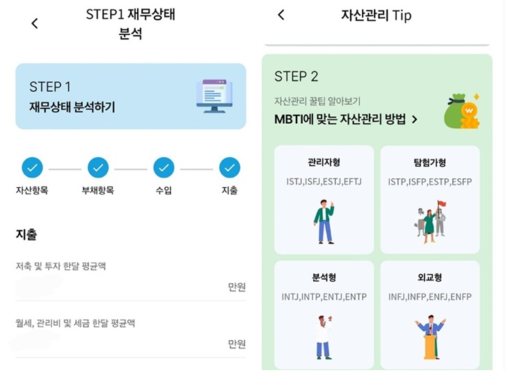 기초 재무 진단은 서민금융진흥원이 제공하는 자산현황보고서 또는 '서민금융 잇다' 앱을 통해 진행할 수 있습니다. 앱에서는 재무 유형을 확인하는 검사와 함께 다양한 자산 관리 팁을 제공하여 청년들이 자신의 재무 상황을 재미있고 쉽게 이해할 수 있도록 도와줍니다.