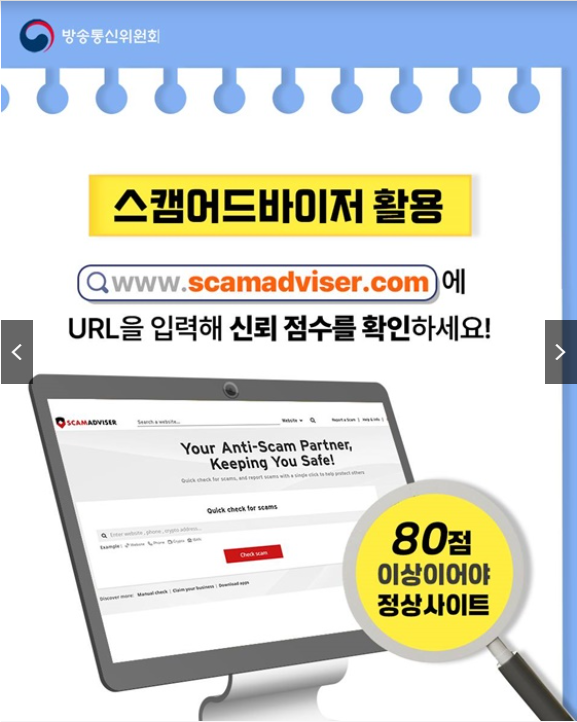 의심되는 사이트가 있다면, 스캠어드바이저(Scamadviser)라는 사이트를 활용해보세요. 스캠어드바이저