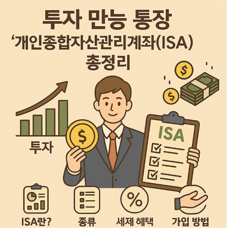 **ISA(Individual Savings Account, 개인종합자산관리계좌)**는 하나의 통장으로 다양한 금융상품에 투자하고, 발생한 수익에 대해 세제혜택까지 받을 수 있는 **'투자 만능 통장'**입니다. 투자에 관심은 있지만 어떻게 시작해야 할지 막막한 분들에게 적합한 제도입니다. 오늘은 ISA의 개념부터 종류, 세제혜택, 가입 방법까지 꼼꼼하게 정리해보겠습니다.