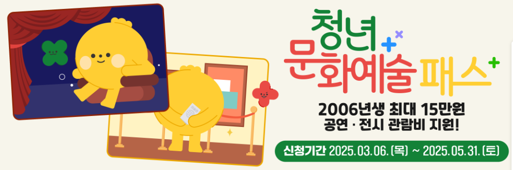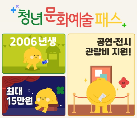 문화체육관광부와 한국문화예술위원회가 함께 준비한 **'청년 문화예술패스'**가 올해도 시행됩니다. 특히 이번에는 2006년생을 대상으로 최대 15만 원까지 지원하며, 국내에서 다양한 문화예술 공연과 전시를 경험할 수 있는 특별한 기회를 제공합니다. 이번 포스팅에서는 청년 문화예술패스에 대한 세부 정보와 신청 방법, 이용 방법 등을 자세히 알아보겠습니다.