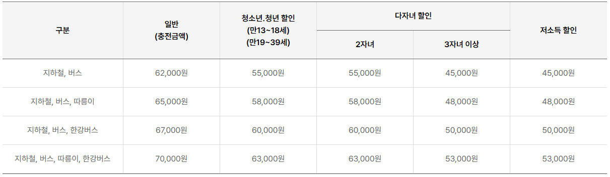 특히 저렴한 요금, 다자녀 할인, 한강버스 포함 혜택까지 더해져 학생과 학부모 모두 만족할 수 있는 교통 복지 제도라 할 수 있습니다.