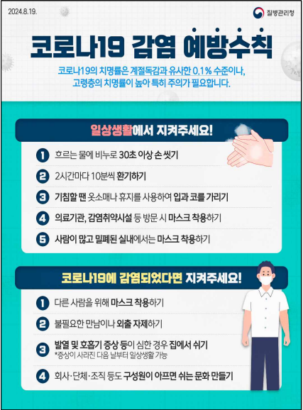 질병관리청은 여름철 코로나19 유행 가능성에 대비해 일상 속 예방수칙 준수를 다시 강조하고 있습니다. 코로나19는 여전히 기침, 재채기 등의 비말로 전파되며, 감염 초기의 전파력이 매우 높아 빠르게 확산될 수 있습니다.