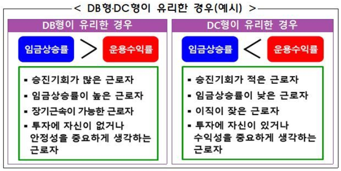 - 임금상승률: 장기적으로 임금이 오를 가능성이 높다면 DB형이 유리