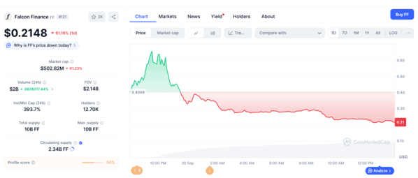 테라-루나 붕괴 당시 “스테이블코인 + 거버넌스 토큰” 조합의 취약성이 드러났던 만큼, 팔콘파이낸스 또한 유사 구조라는 점에서 투자자들 사이에서 경계가 제기되었다. 특히 급격한 가격 붕괴 사례가 반복될 수 있다는 경고 목소리가 나왔다.