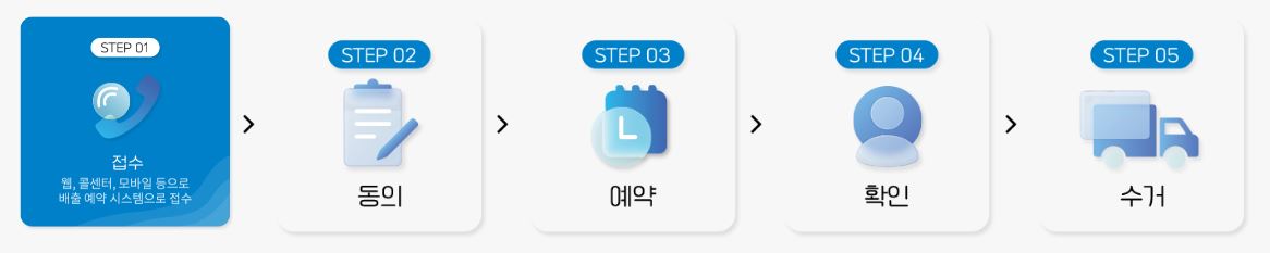 - 방문 수거가 불가능한 경우 지자체별 유료 대형폐기물 배출 서비스를 이용할 수 있습니다.