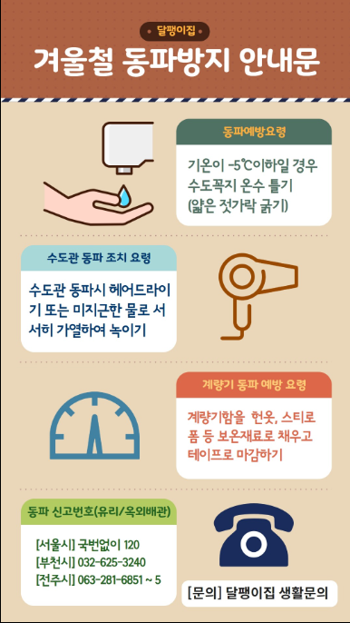 아파트나 오피스텔의 경우 관리사무소에서 겨울철 동파 예방 안내를 제공하는 경우가 많습니다. 장기 외출 전 관리사무소에 미리 알리고, 비상 연락처를 남겨두면 혹시 모를 상황에서 빠른 대응이 가능합니다.