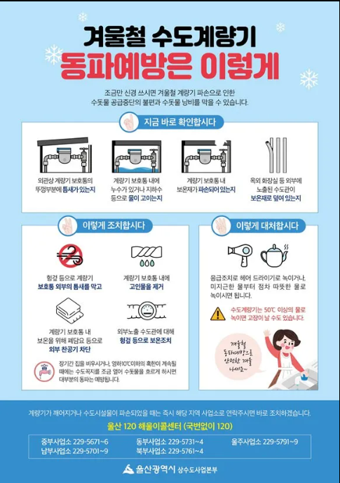 겨울철 동파는 한 번 발생하면 불편함과 경제적 부담이 동시에 따라오는 문제지만, 대부분은 사전 관리만 잘해도 충분히 예방할 수 있는 생활 사고입니다. 계량기와 배관 보온, 미세 물 흐름 유지, 보일러 외출 모드 활용 같은 기본적인 습관만으로도 동파 위험은 크게 줄어듭니다. 특히 장기 외출이나 한파 예보가 있는 날에는 한 번 더 점검하는 여유가 필요합니다. 올겨울에는 미리 준비해 동파 걱정 없는 안전한 겨울을 보내시길 바랍니다.