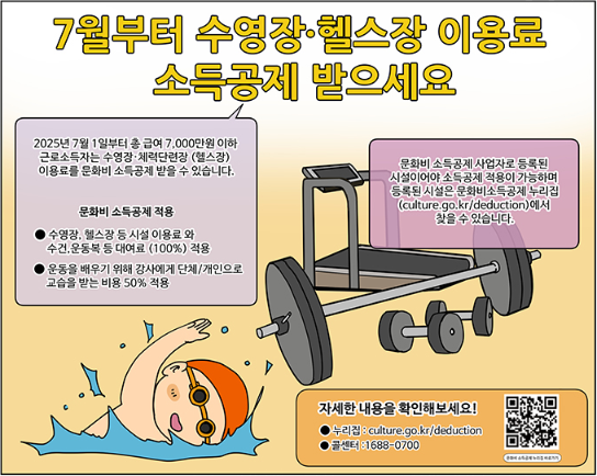 기존에는 **체력단련장업(헬스장)**과 수영장업 등 일부 시설만 문화비 소득공제 대상으로 한정돼 있었으나, 이번 확대 조치로 인해 공공체육시설과 종합체육시설업까지 포함됩니다.