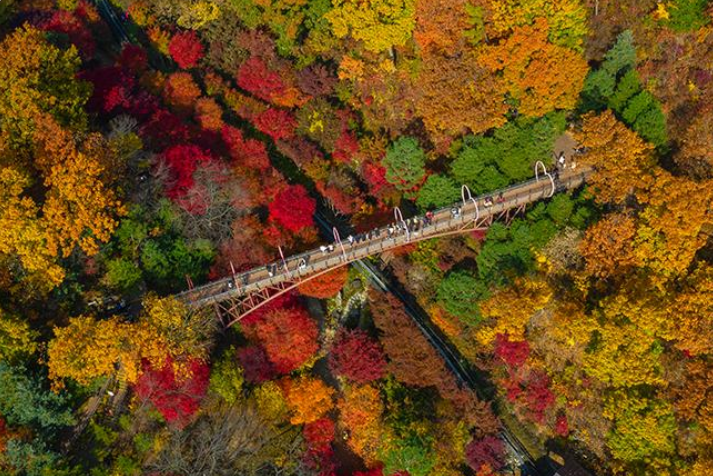 곤지암 리조트 부지 내 조성된 화담숲(생태수목원)은 가을 단풍이 절정에 이를 무렵, 수도권 접근성이 좋아 많은 방문객이 몰립니다.