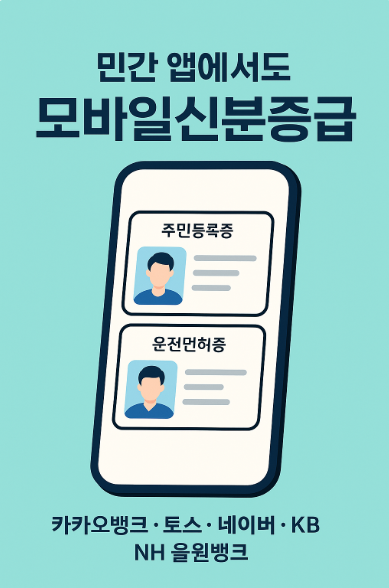 2025년 7월 23일부터 카카오뱅크, 토스, 네이버, KB스타뱅킹, NH올원뱅크 등 주요 민간 앱에서도 모바일 신분증 발급이 가능해졌습니다. 실물 신분증과 동일한 법적 효력을 지닌 모바일 신분증의 확대 배경과 보안성, 활용 사례, 앞으로의 확산 전략을 상세히 정리했습니다.