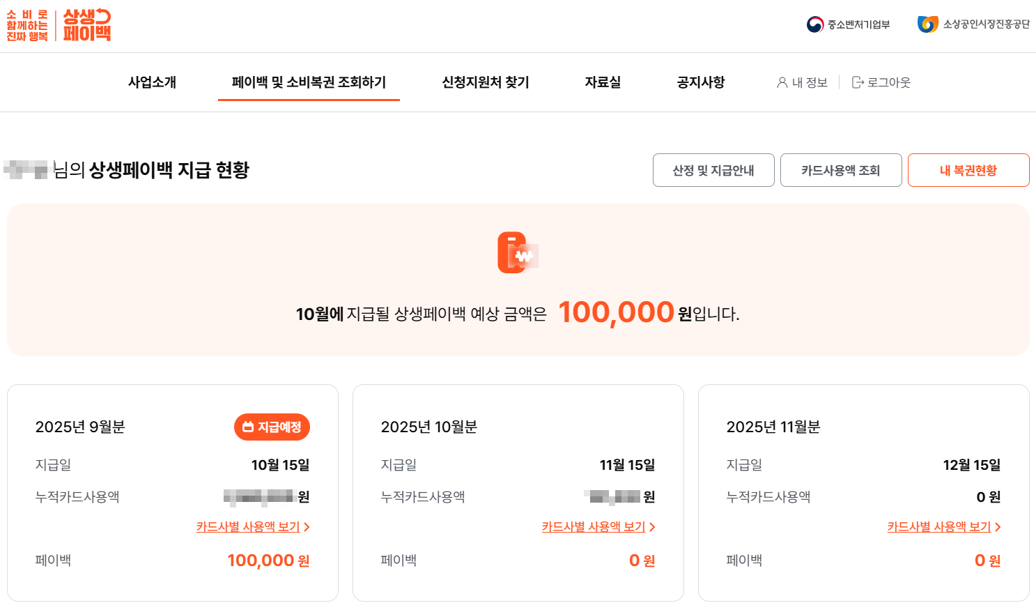 또한 카드사(예: 신한카드 등)에서는 상생페이백 메뉴에서 환급 한도, 실적, 지급 예정 내역 등을 확인할 수 있습니다.