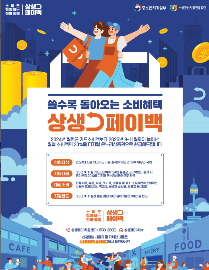 2025년 9월 카드 소비액 증가분의 20%를 디지털 온누리상품권으로 환급받는 법, 계산식과 지급일을 자세히 알려드립니다.