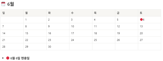 | 월 | 공휴일 / 주요 이벤트 | 비고 |