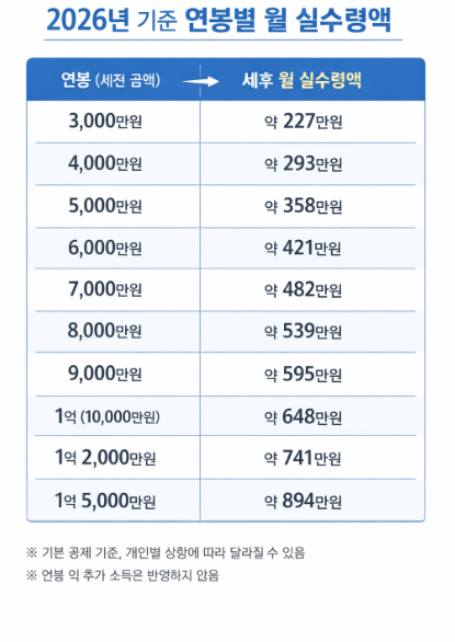 3. 2026년 연봉 구간별 실수령액 흐름 정리