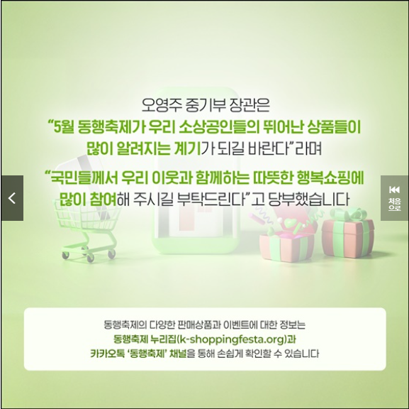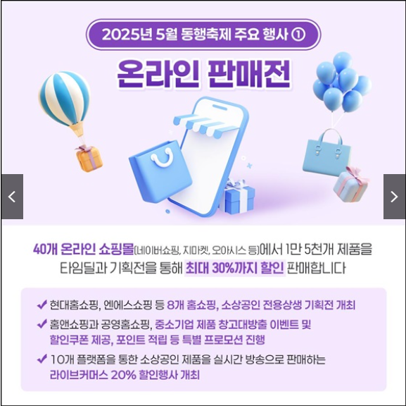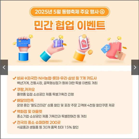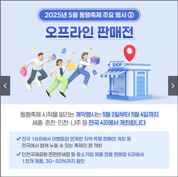 2025년 5월 동행축제는 소비자들에게 다양한 혜택을 공함과 동시에 중소기업과 소상공인의 판로 확대를 지원하는 중요한 행사입니다. 이번 기회를 통해 합리적인 소비와 지역경제 활성화에 동참해보시기 바랍니다.