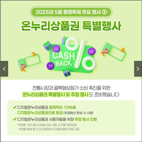 디지털 온누리상품권을 활용한 환급 혜택은 행사 기간 동안 적용되며, 일부 행사나 할인은 한정 수량으로 제공되므로 빠른 참여가 필요합니다. 또한, 오프라인 행사에 참여할 경우 행사 일정과 장소를 미리 확인하여 원활한 참여를 준비하시기 바랍니다.