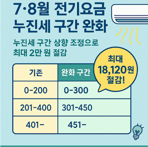 2025년 7~8월 누진세 구간 조정안은 아래와 같습니다.
